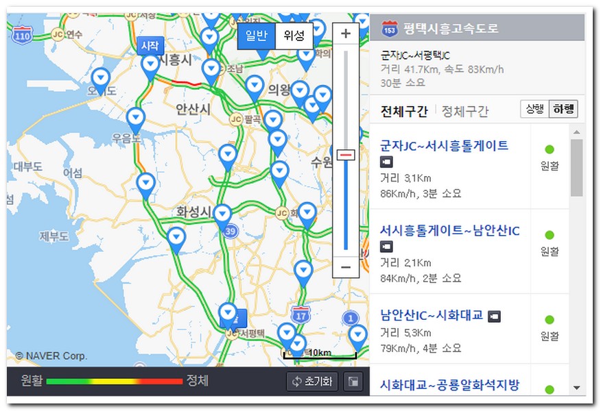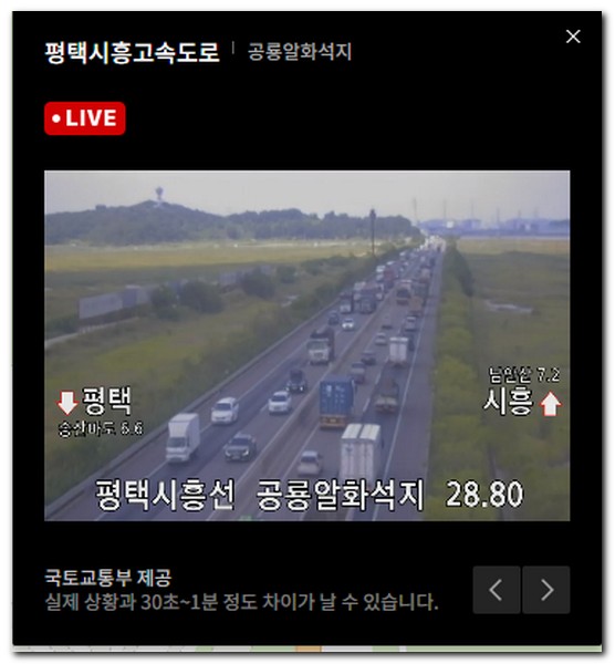 네이버 지도를 통해 제2서해안 고속도로(평택시흥고속도로)의 교통상황을 실시간 CCTV를 통해서 고화질로 감상할 수 있다.