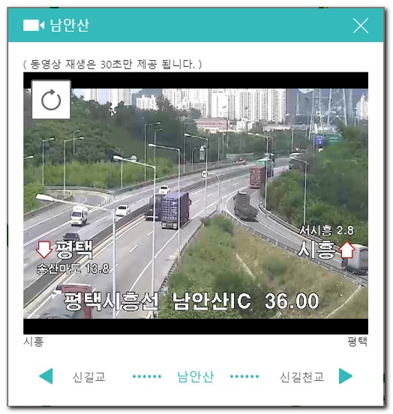 로드플러스에서 보게 되면 평택시흥선으로 표시되는데, 평택시흥선이 제2서해안 고속도로를 말한다. 영상 화질도 좋으며 남안산 부근 cctv를 실시간으로 확인해볼 수 있지만 동영상 재생시간은 30초를 넘지 못한다.