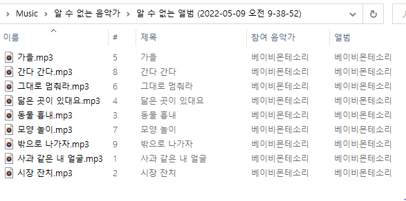음원 추출이 완료되었다면 음악이 복사된 폴더로 이동한다.