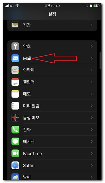 설정 -> Mail 선택
