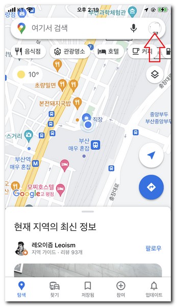 아이폰 바탕화면에 있는 구글지도(구글맵스)을 실행한다.