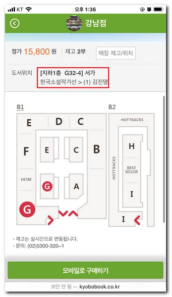 미리 교보문고를 방문하기 전에 해당 도서가 지점에 있는지, 그리고 어느위치에 있는지 미리 파악한 후에 방문한다면 보다 시간적인 효율을 얻을 수 있다.