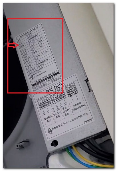 설치 결선도 윗쪽에 라벨을 자세히 확인해보면 "모델명"이라고 작게 적혀 있는게 보인다.