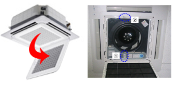 시스템 에어컨 실내기 모델은 커버(그릴)을 열면 내부 철판에 위치한 라벨(스티커)에서 모델명을 확인할 수 있다.