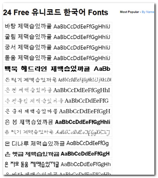 다양한 폰트들이 존재하며 한국어로 되어 있다. 자유롭게 사용할 수 있는 무료 폰트이며 텍스트 란에 만들 폰트를 선택하면 된다.