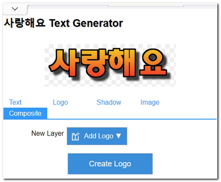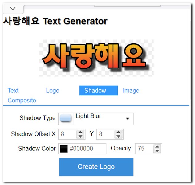 나만의 텍스트 로고 만들기 설정이 완료되었다면, Create Logo를 선택해서 로고를 생성한다.