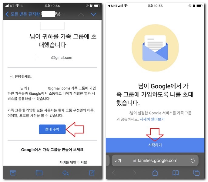그럼 가족 그룹 관리자에게서 보내온 메일을 확인할 수 있는데, 메일을 열어본다.