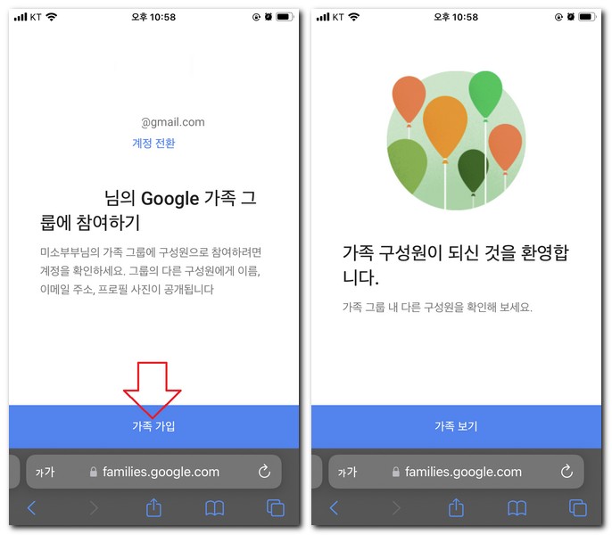 가족 가입 버튼을 선택해서 최종적으로 구글 가족그룹에 가입을 진행한다.