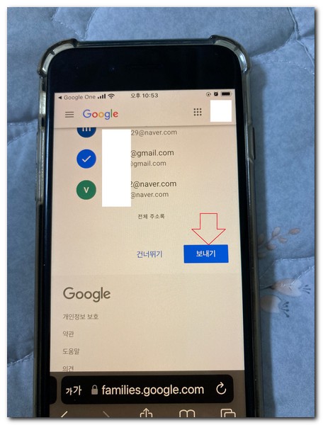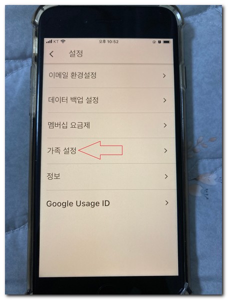 이제 가족구성원 휴대폰으로 이동한다. 상대방 휴대폰에서 메일 확인을 진행한다.