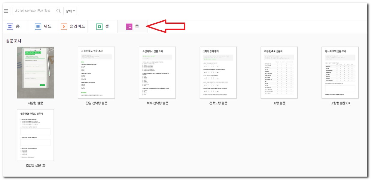 네이버 오피스 폼에서는 무료로 설문조사를 작성할 수 있는 폼 예제를 제공해준다. 이부분이 생각보다 많이 활용되고 있으며 가치가 높다.