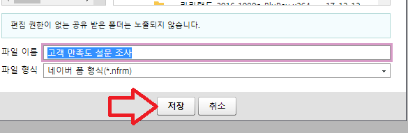 네이버 mybox에 파일을 저장하게 되는데, 파일 형식은 네이버 폼 형식(nfrm)으로 저장하면 된다.