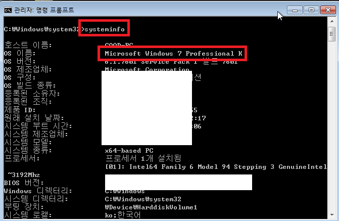 윈도우7 프로페셔널 버전인것을 확인할 수 있다.