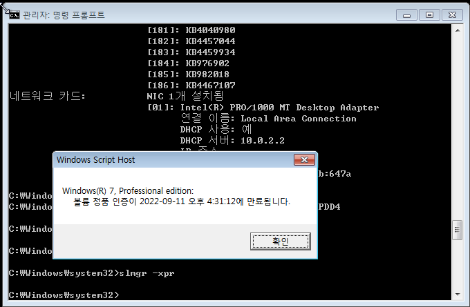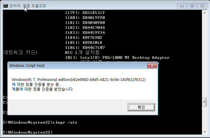 윈도우7 KMS 정품인증 없애기 CMD 명령어 사용법