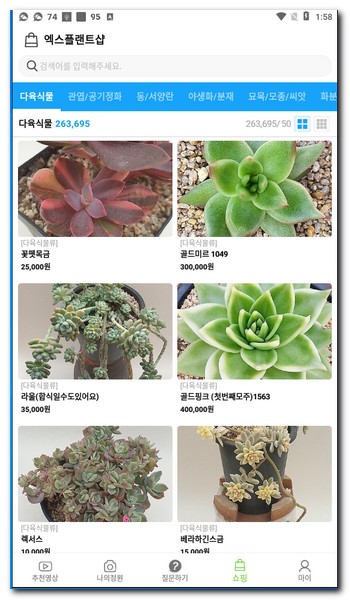 자신들이 현재 키우고 있는 다육식물 사진을 업로드 하기도 하고 업체에서 다육식물을 판매하기도 한다. 직접 구입하지 않아도 판매되고 있는 다육식물 사진과 종류를 검색하거나 알아보면 된다.