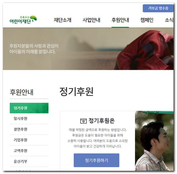 정기후원, 일시후원, 기업후원, 고액후원 등 다양한 후원 캠페인이 있으며 본인이 후원을 하고 싶다면 후원하기 신청을 하면 된다.