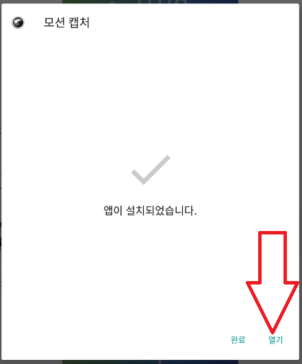 "앱이 설치되었습니다."라는 메시지가 나타나면 "열기"버튼을 선택해서 어플을 실행한다.