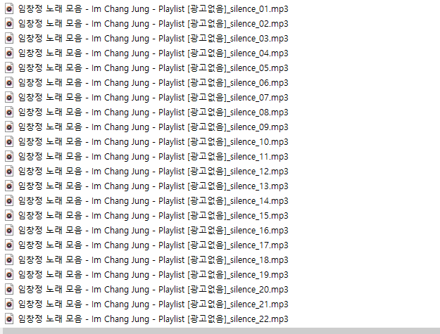 작업이 완료되면 파일명은 동일하지만 하나의 음악으로 되어 있던 곡이 여러개의 음악 파일로 나뉘어져 있는것을 확인할 수 있다.