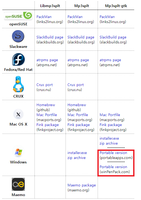Libmp3splt, mp3splt, mp3splt-gtk 이렇게 총 3가지로 나뉘어져 있다.