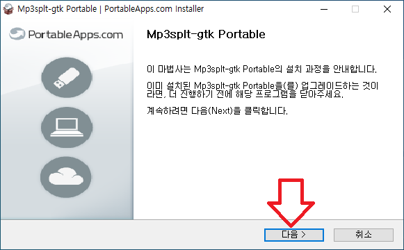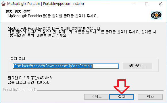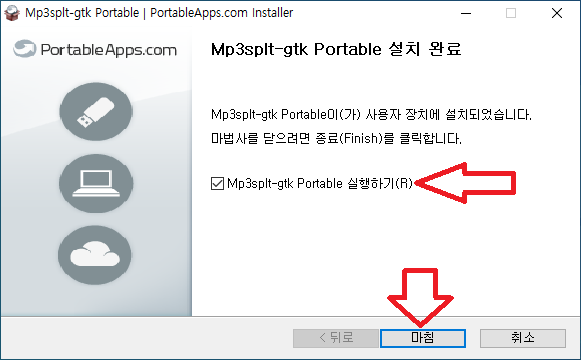 설치가 완료되면 mp3splt-gtk portable 실행하기를 선택한 후 마침을 선택한다.