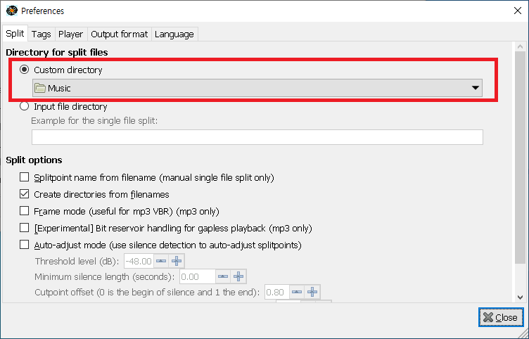 트랙 나뉘어졌을때 저장되는 파일 경로를 지정하면 된다.