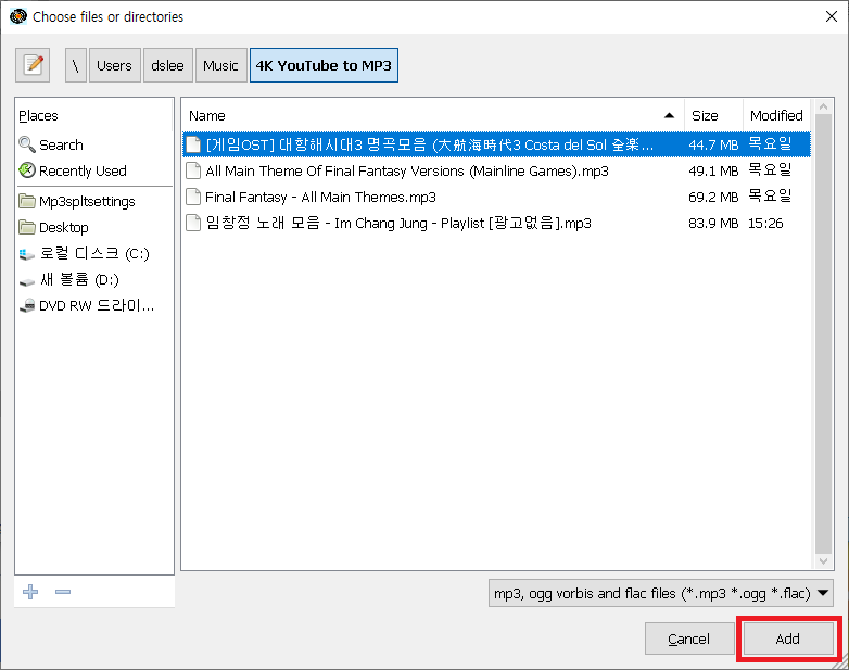 음악을 쪼개고 싶은 긴 음악 파일을 선택한다.