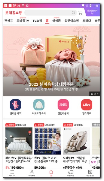 모든 설정이 완료되면 롯데홈쇼핑 앱을 사용할 수 있다.