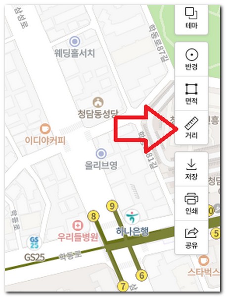 네이버 지도에 접속하게 되면 우측 화면에 "거리"라는 아이콘을 선택한다.