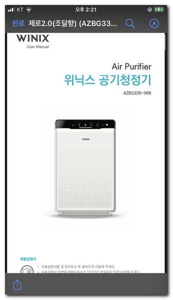 pdf파일 뷰어가 가능한 상태라면 화면과 같이 바로 위닉스 공기청정기 사용설명서를 읽어볼 수 있게 된다.