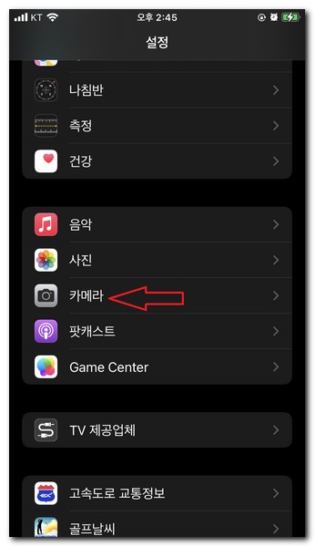 카메라 메뉴를 선택한다.