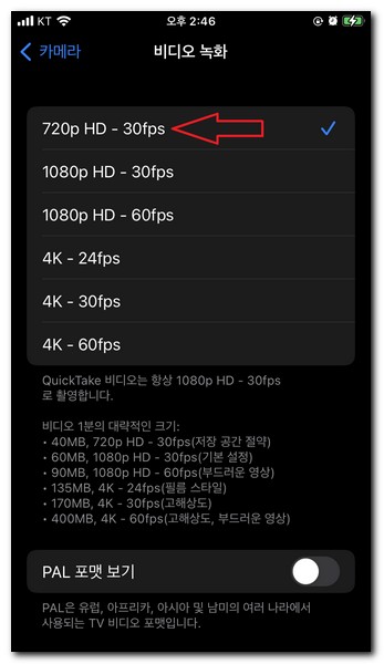 아이폰 화면녹화 용량 크기 낮게 설정하기