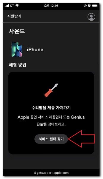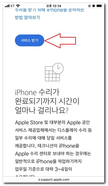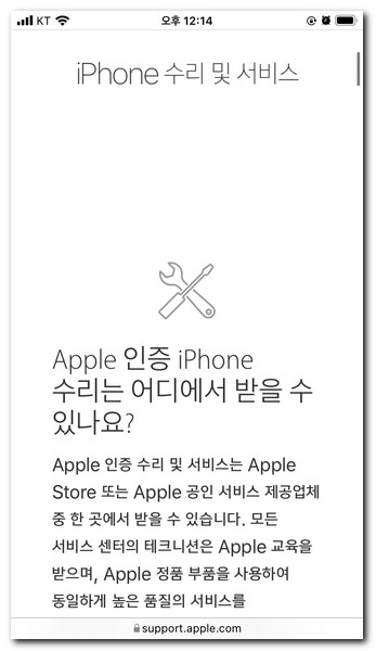 별다른 앱 설치 없이 사파리 브라우저를 실행시켜서 아이폰 수리 및 서비스 센터 홈페이지에 방문한다.