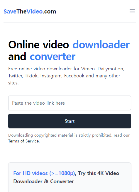 Vimeo, Dailymotion, Twitter, Tiktok, Instagram, Facebook 뿐만 아니라 카카오tv, 네이버tv, 유튜브 같은 곳에서 영상을 무료로 변환해서 저장가능