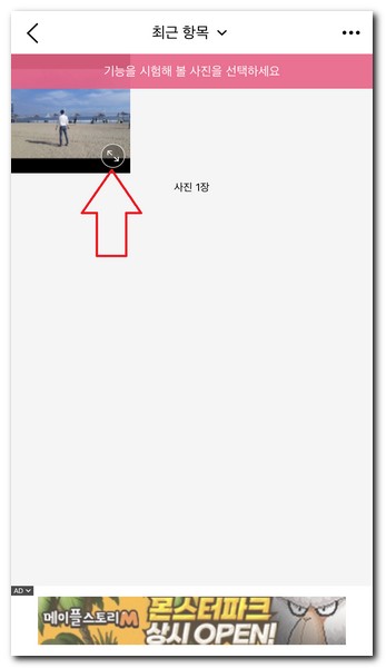 사진을 선택한 후에 화살표 방향을 선택한다.