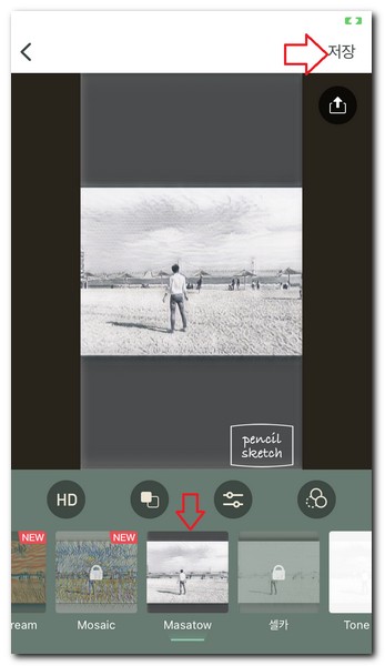 Pencil sketch이라는 앱을 사용해서 사진을 만화 스케치를 하듯이 만들 수 있다.
