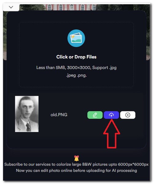 흑백 이미지(사진)가 선택되었다면 사진 편집도 가능하지만 바로 컬러 사진으로 복원할 수 있다. 구름모양의 아이콘을 선택한다.
