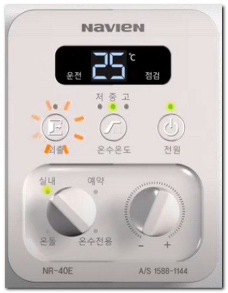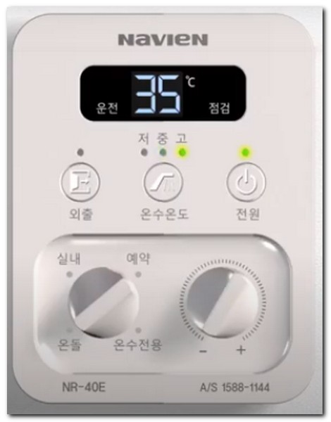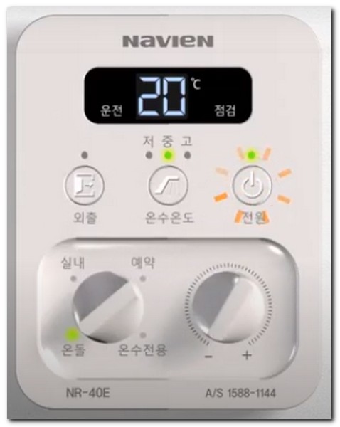 기본적으로 경동나비엔 보일러 온도조절기 모델들의 사용법은 비슷하다. 아래 내용은 NR-40E모델에 대해서 설명해놓는다. NR-36D, NR-36E, 20, 15 등 여러가지 모델들이 있는데 대략적인 사용법은 동일하다.전원 ON/OFF