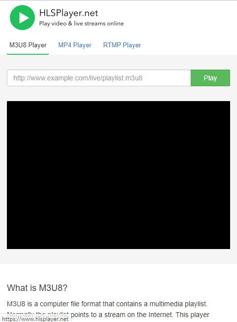 play 재생 버튼 왼쪽에 m3u8 주소를 붙여넣기 한다.