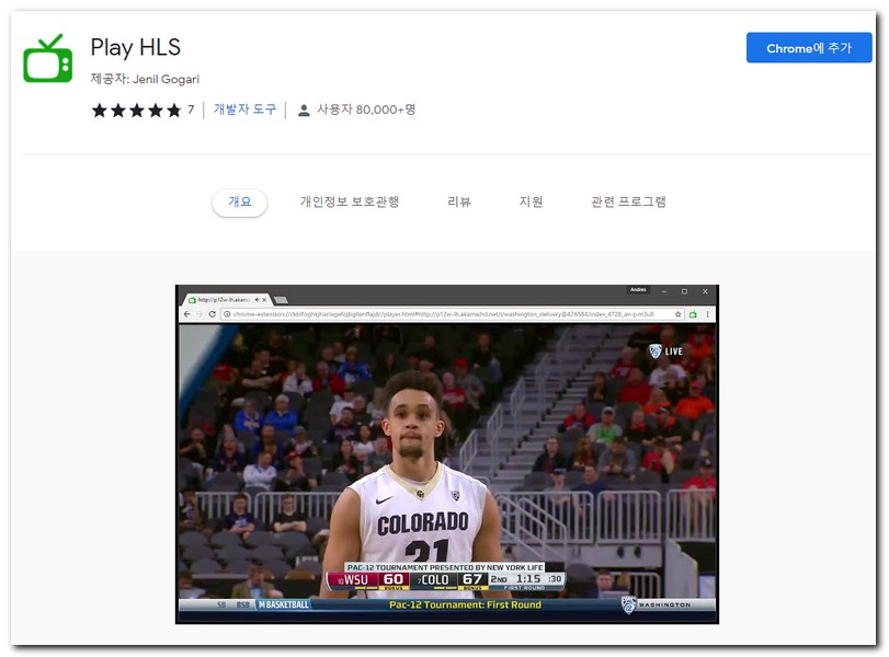 크롬 확장 프로그램 중 Play HLS이라는 앱이 있다.