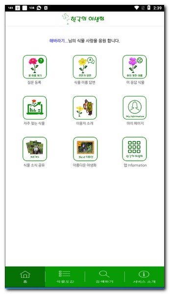 하단 메뉴에 식물도감 카테고리가 있는데 터치한다.