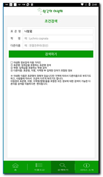 국가 생물종지식정보시스템에서 제공해주는 식물종자를 찾는것은 조금 어려운데, 앱을 이용해서 검색하면 쉽게 찾을 수 있어서 2가지 모두 이용해보는것을 추천하고 싶다.