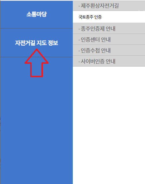 카테고리가 나타나게 되는데, "자전거길 지도 정보"를 선택한다.