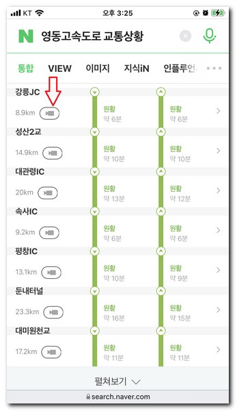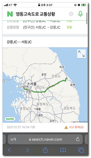 네이버에서 제1영동고속도로 또는 영동고속도로 교통상황이라고 검색한다.