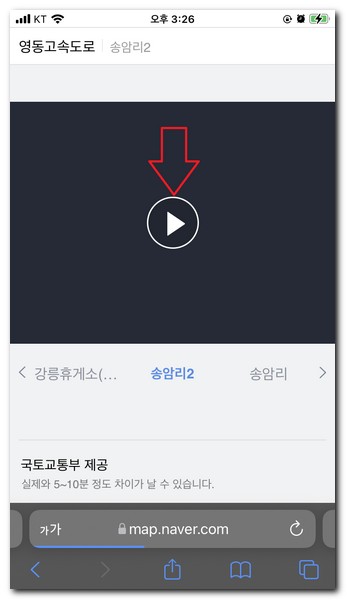 조금 시간이 지나면 영상을 시청할 수 있는 페이지로 이동하게 된다. 영상 제공은 국토교통부에서 제공된 영상이기 때문에 실제와 5분에서 10분정도 차이가 발생될 수 있다.