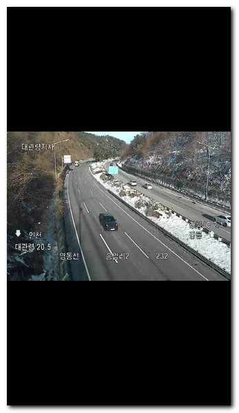 영상이 제대로 보여주고 있으며, 화질이 cctv치고는 괜찮은편이다. 현재 눈이 온 상태이지만 도로상황은 대체로 원활하고 괜찮다는것을 확인할 수 있다.