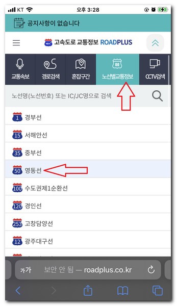 영동고속도로 실시간 교통상황 CCTV 보는법