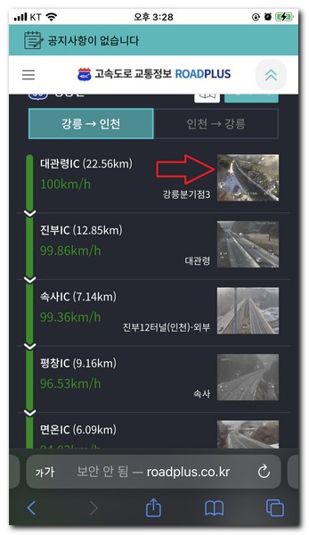 로드플러스에서 제1영동고속도로 CCTV보기