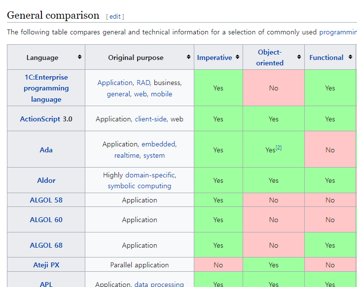 위키피디아에서는 전세계적으로 프로그래밍 언어 사용 빈도에 대해서 자세히 알려주는 문서 페이지를 제공해주고 있다. 전반적으로 프로그래밍 비교분석의 내용으로 설명되어 있다.
