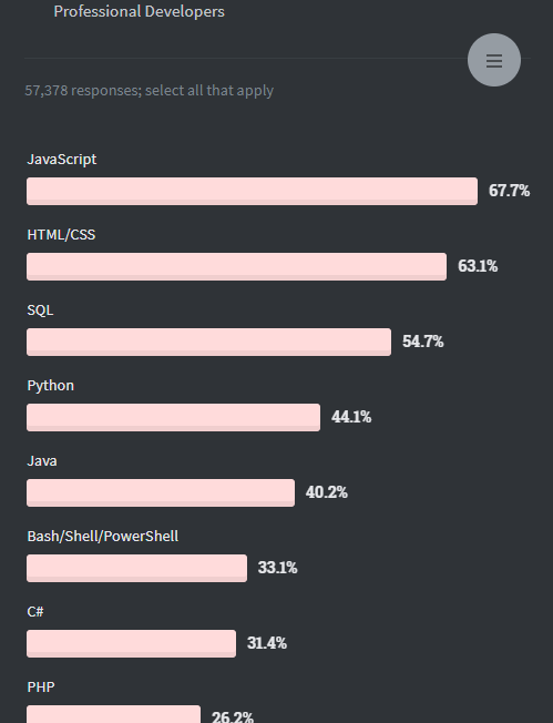 stackoverflow 사이트에서는 개발자들에 대한 다양한 설문조사를 하는 곳이다. 이곳에서는 가장 인기 있고 많이 사용되고 있는 프로그래밍 언어 순위도 확인할 수 있다.