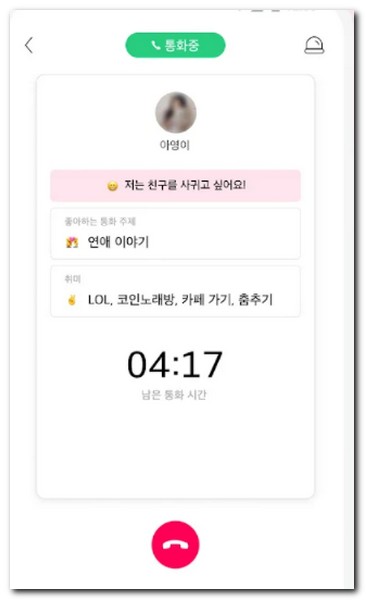 정말 색다른 친구사귀는 어플인것 같다. 대화친구를 찾아줌으로써 바로 보이스톡을 할 수 있다. 문자메시지로 채팅을 하는것이 아닌 통화를 통해서 상대방 목소리를 들으면서 대화가 가능하다.