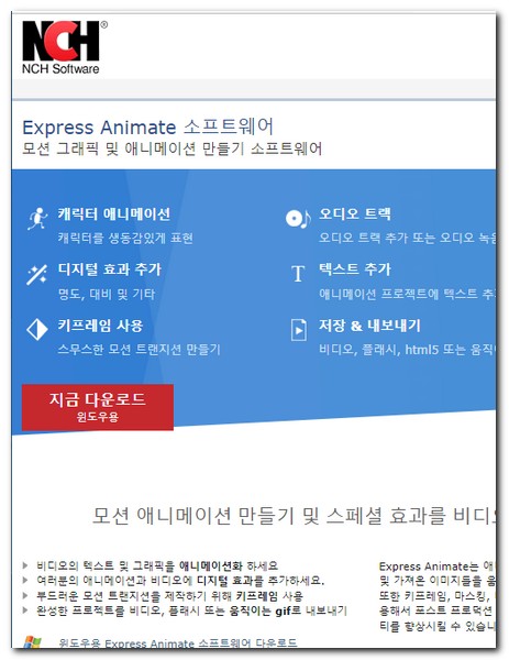 Express Animate에서는 모션 애니메이션을 만들어서 특수한 효과와 비디오를 추가하고 싶을때 적합한 프로그램이다. 비디오의 텍스트 및 그래픽을 애니메이션으로 만들 수 있는게 특징이다.